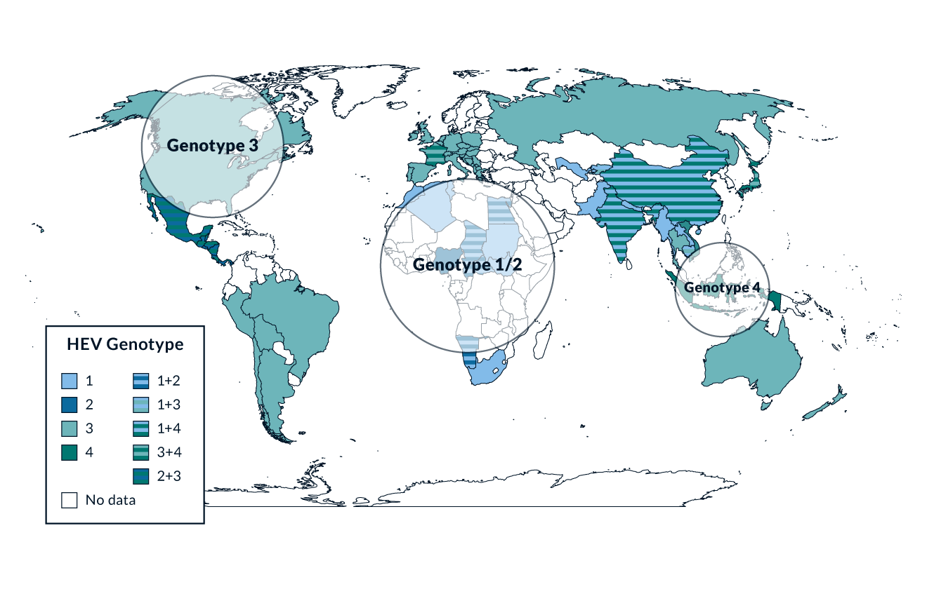 Figure 1. Worldwide distribution of the four main HEV genotypes